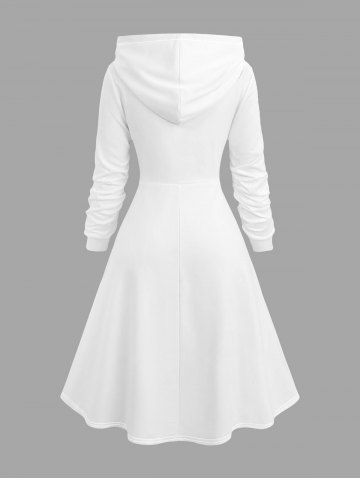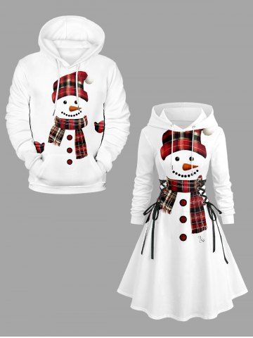 Plus Size Christmas Santa Claus Plaid Hat Scarf Gloves Print Lace Up Drawstring Hoodie Dress - White - S