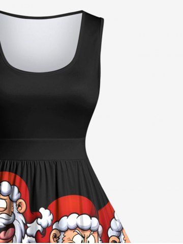 Plus Size Christmas Santa Claus Print 1950s Vintage Dress - Black - 3x