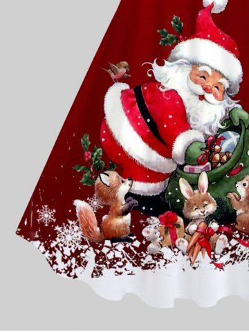 Plus Size Christmas Santa Claus Sacks Squirrel Snowflake Colorblock Print Tank Dress - Red - Xs