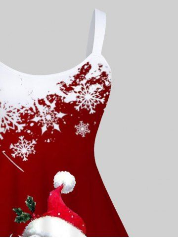 Plus Size Christmas Santa Claus Sacks Squirrel Snowflake Colorblock Print Tank Dress - Red - L