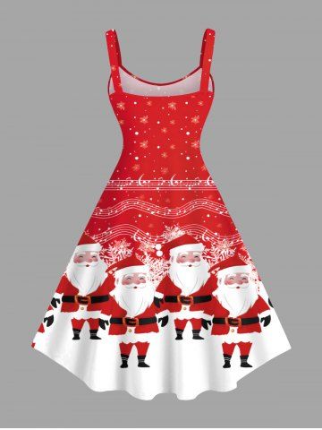 Plus Size Christmas Santa Claus Snowflake Colorblock Musical Notes Print Tank Dress - Red - 5x