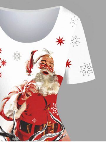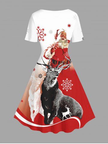 Plus Size Christmas Santa Claus Snowflake Elk Print Vintage Dress - Red - 6x