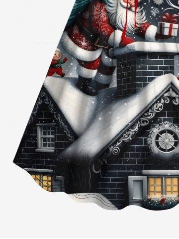 Dresses > Plus Size Christmas Santa Claus Snowflake Plaid Print Cinched Dress