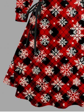 Plus Size Christmas Santa Claus Snowflake Plaid Print Lace Up Drawstring Hoodie Dress - Red - S