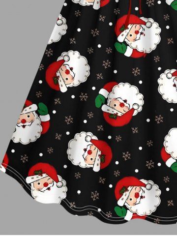 Plus Size Christmas Santa Claus Snowflake Stripes Print Cinched Dress - Black - Xxs