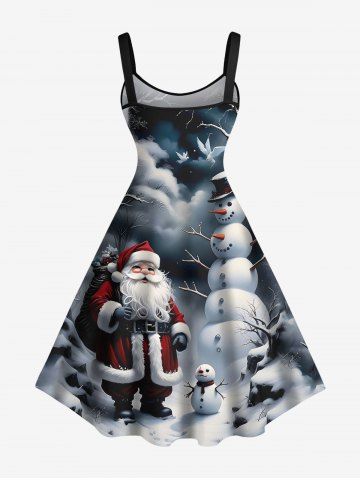 Plus Size Christmas Santa Claus Snowman Cloud Print Tank Dress - Black - 1x