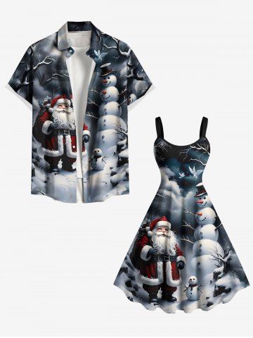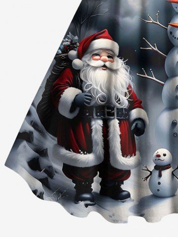 Plus Size Christmas Santa Claus Snowman Cloud Print Tank Dress - Black - 3x