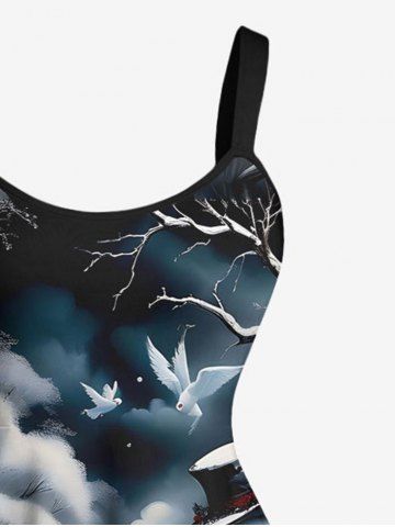 Plus Size Christmas Santa Claus Snowman Cloud Print Tank Dress - Black - 6x