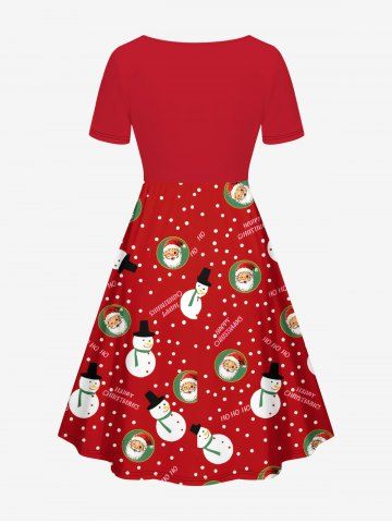 Plus Size Christmas Santa Claus Snowman Snowflake Print Cinched Dress - Red - M