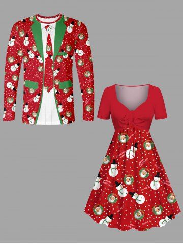 Plus Size Christmas Santa Claus Snowman Snowflake Print Cinched Dress - Red - 1x