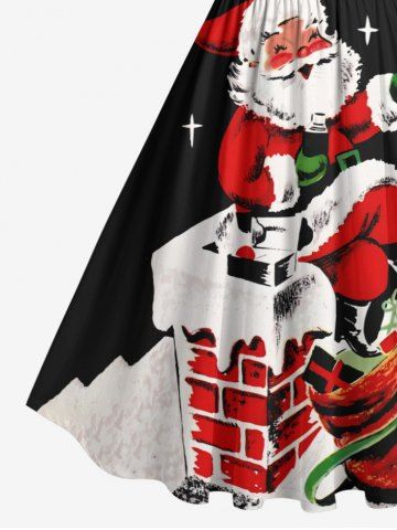 Plus Size Christmas Santa Claus Star Chimney Print 1950s Vintage Dress - Black - S