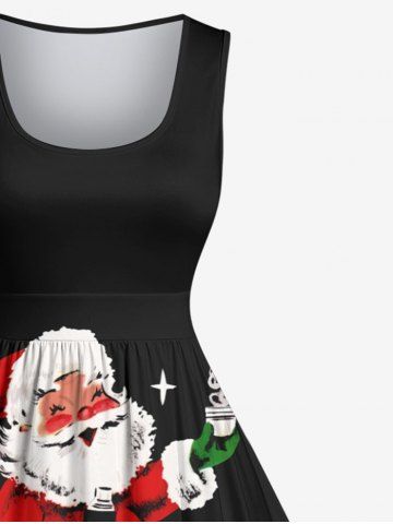 Plus Size Christmas Santa Claus Star Chimney Print 1950s Vintage Dress - Black - L