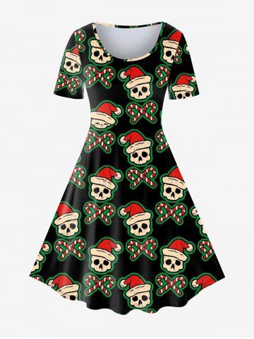 s*****25Plus Size Christmas Skull Hat Candy Print DressColor: BLACK Size: 3X | US 22-24nice comfy dress love the design and will be nice to wear for the Christmas month 😊