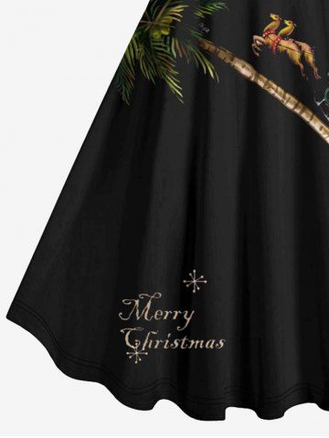 Plus Size Christmas Sled Elk Santa Claus Coconut Tree Print Tank Dress - Black - 2x
