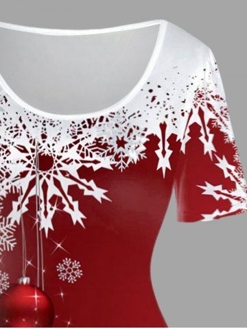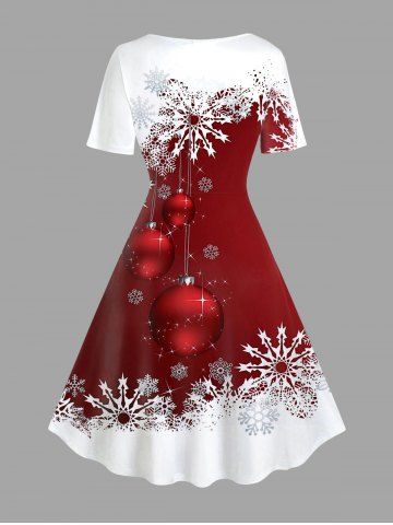 n*****s5Plus Size Christmas Snowflake Ball Print A Line DressColor: DEEP RED Size: L | US 12Absolutely love this dress. Got matching dresses for me and both my daughters and really glad I did