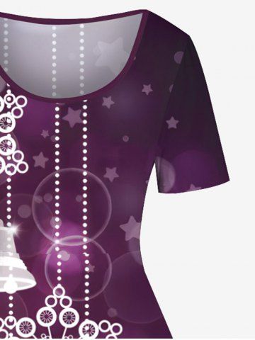 Plus Size Christmas Snowflake Bell Bubble Stars Print Ombre A Line Dress - Concord - L