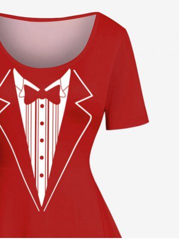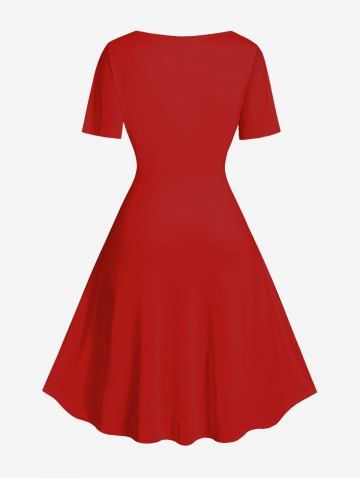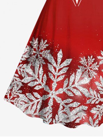 Plus Size Christmas Snowflake Bowknot Lapel Collar Print Vintage Dress - Red - 1x