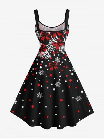 Plus Size Christmas Snowflake Bowknot Polka Dot Print A Line Tank Dress - Black - M