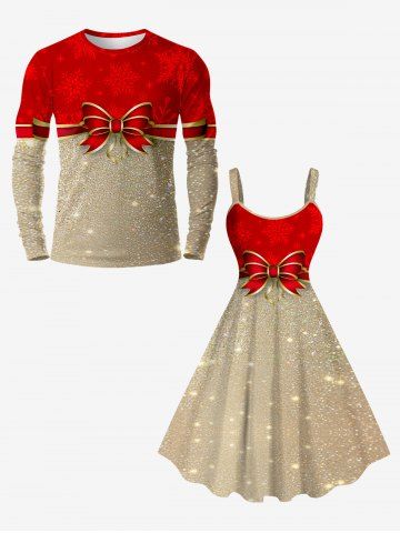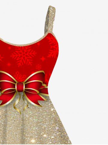 Dresses > Plus Size Christmas Snowflake Bowknot Sparkling Sequin 3D Print Tank Dress