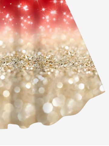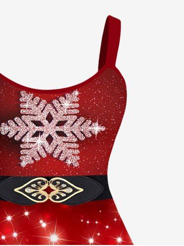 Plus Size Christmas Snowflake Buckle Belt Sparkling Sequin Glitter 3D Print Tank Party Dress - Red - Xs