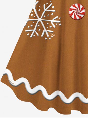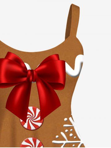 Plus Size Christmas Snowflake Candy Button Bowknot Print A Line Tank Dress - Coffee - 6x