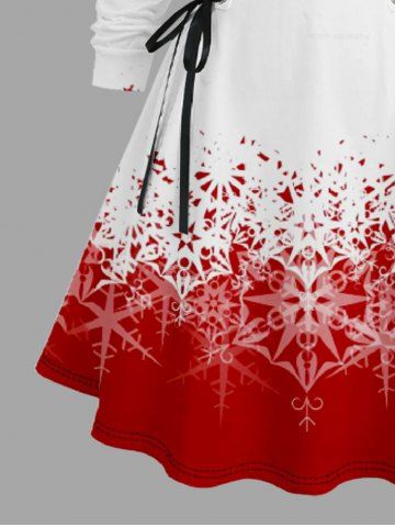 Plus Size Christmas Snowflake Colorblock Print Lace Up Drawstring Hoodie Dress - Red - L