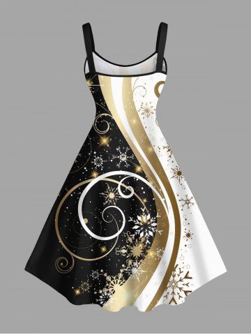 Plus Size Christmas Snowflake Curve Colorblock Print Tank Dress - Black - 5x