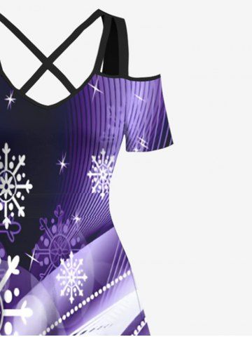 Plus Size Christmas Snowflake Curve Light Beam Ombre Print Cold Shoulder Crisscross Maxi Dress - Purple - S