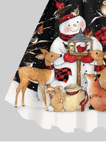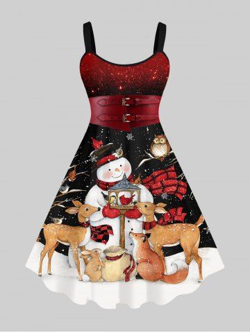 Plus Size Christmas Snowflake Elk Rabbit Dog Snowman Star Glitter Buckle Belt 3D Print Tank Dress - Multi-a - 1x