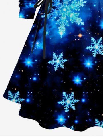 Plus Size Christmas Snowflake Galaxy Print Lace Up Drawstring Hoodie Dress - Sky Blue - 2x