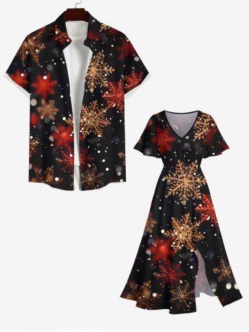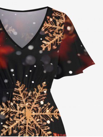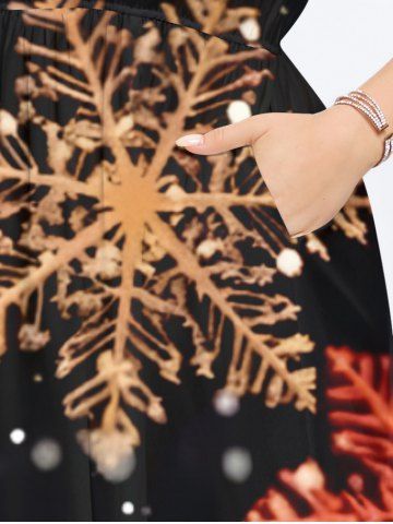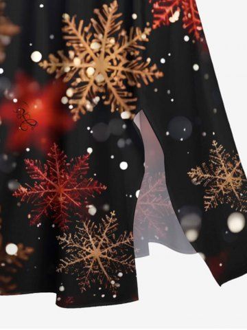 Plus Size Christmas Snowflake Glitter 3D Print Split Midi Dress - Black - M