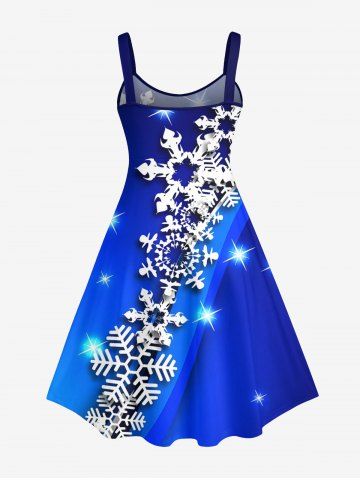 Plus Size Christmas Snowflake Glitter 3D Print Tank Dress - Sky Blue - 5x