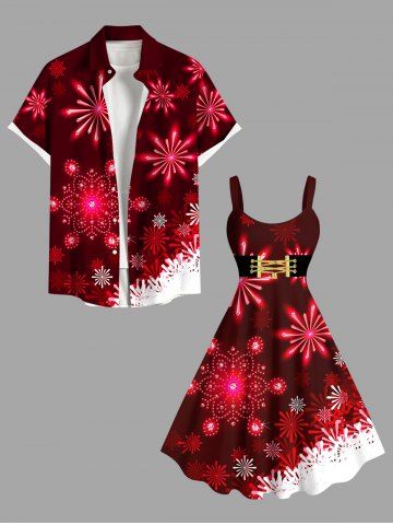 Plus Size Christmas Snowflake Glitter Belt 3D Print Tank Dress - Red - M