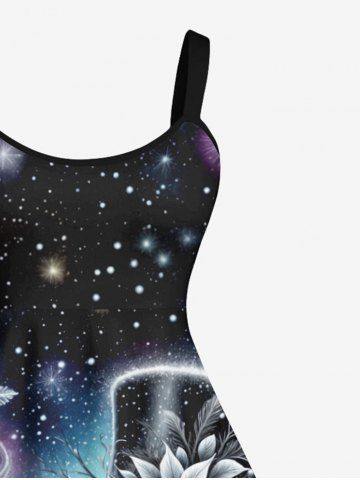 Plus Size Christmas Snowflake Hat Snowman Galaxy Star Print Tank Dress - Black - 6x