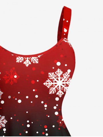 Plus Size Christmas Snowflake Ombre Colorblock Print Tank Dress - Red - Xs