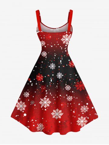 Plus Size Christmas Snowflake Ombre Colorblock Print Tank Dress - Red - 1x