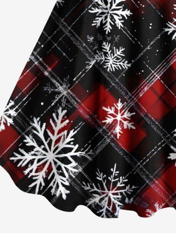 Plus Size Christmas Snowflake Plaid Print Tank Dress - Black - 1x
