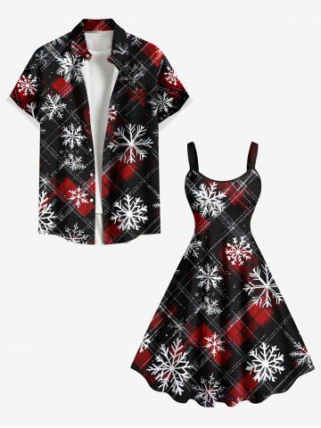 Plus Size Christmas Snowflake Plaid Print Tank Dress - Black - 6x