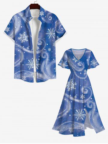Plus Size Christmas Snowflake Print Split Midi Dress - Blue - 6x