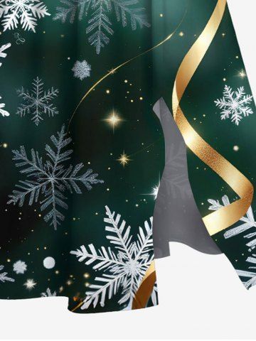 Plus Size Christmas Snowflake Ribbon Ombre Galaxy Print Split Pocket A Line Midi Dress - Plant Green - M