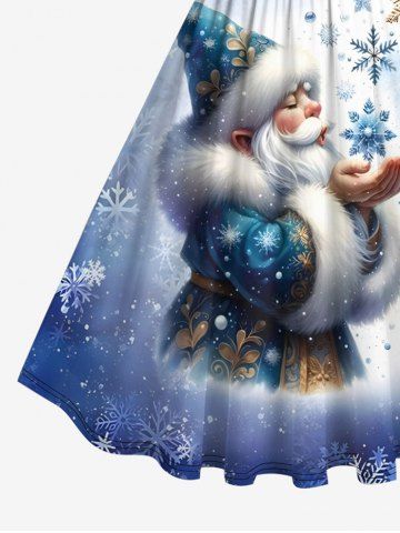 Plus Size Christmas Snowflake Santa Claus Print Ombre Vintage Swing A Line Dress - Blue - M