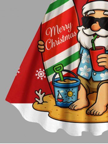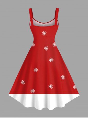 Plus Size Christmas Snowflake Santa Claus Skateboard Print A Line Dress - Red - S