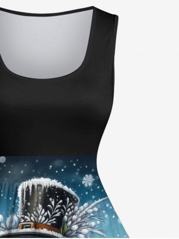 Plus Size Christmas Snowflake Snowman Dragon Ombre Sky Print Vintage Swing A Line Dress - Black - 2x