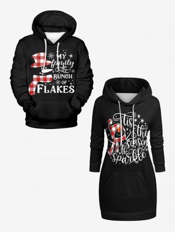 Dresses > Plus Size Christmas Snowflake Snowman Letters Plaid Hat Scarf Print Pullover Long Sleeves Hoodie
