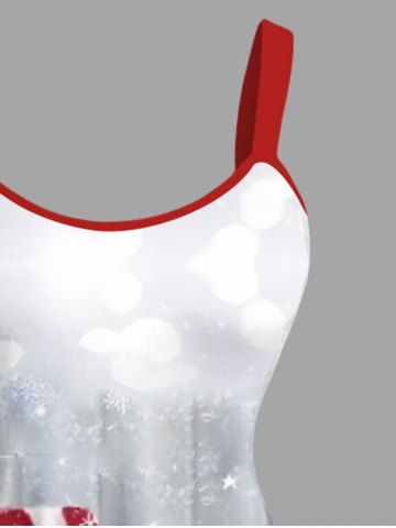 Plus Size Christmas Snowflake Snowman Patriotic American Flag Print A Line Dress - White - 6x