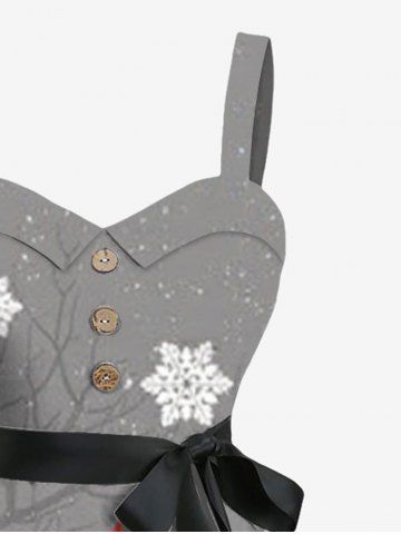 Plus Size Christmas Snowflake Snowman Rabbit Flower Print Button A Line Dress with Removable Belt - Gray - 5x