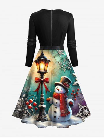Dresses > Plus Size Christmas Snowflake Snowman Street Lamp Print Ombre Scalloped Neck A Line Dress with Removable Belt