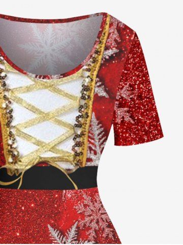 Plus Size Christmas Snowflake Sparkling Sequin Lace Up 3D Print Vintage Dress - Red - Xs