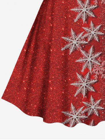 Plus Size Christmas Snowflake Sparkling Sequin Lace Up 3D Print Vintage Dress - Red - 3x