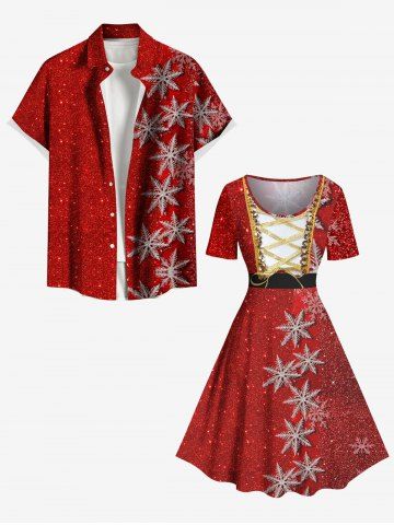 Plus Size Christmas Snowflake Sparkling Sequin Lace Up 3D Print Vintage Dress - Red - 5x